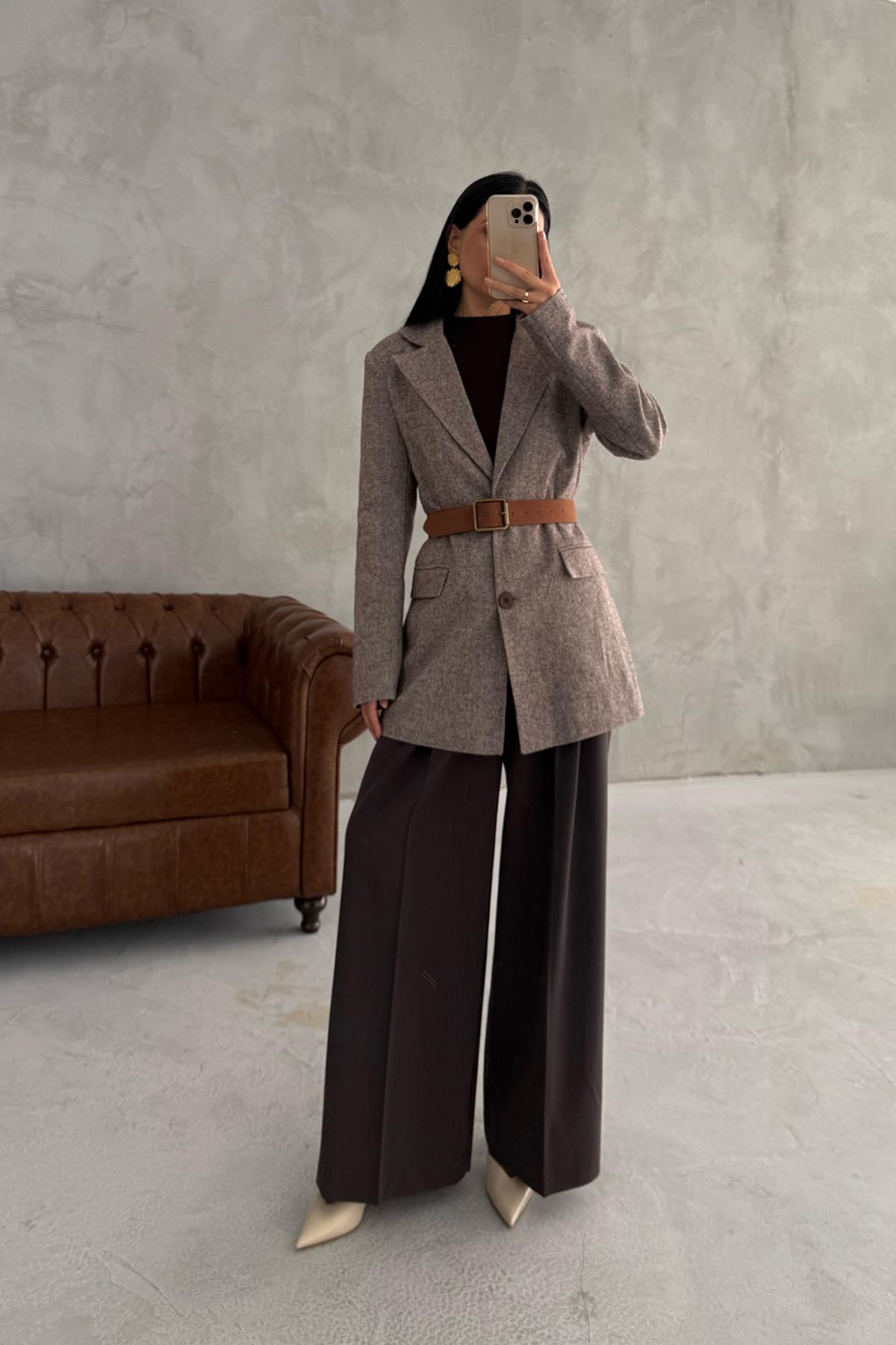 Ürün Detayları ; Vizon Kemerli Çift Düğmeli Oversize Ceket