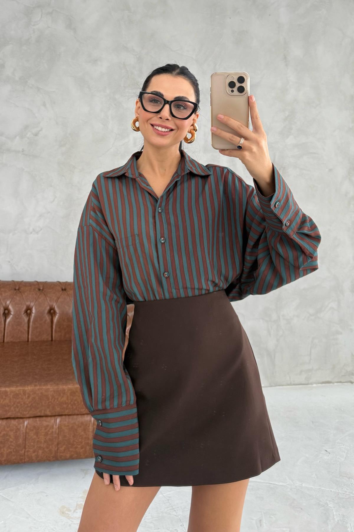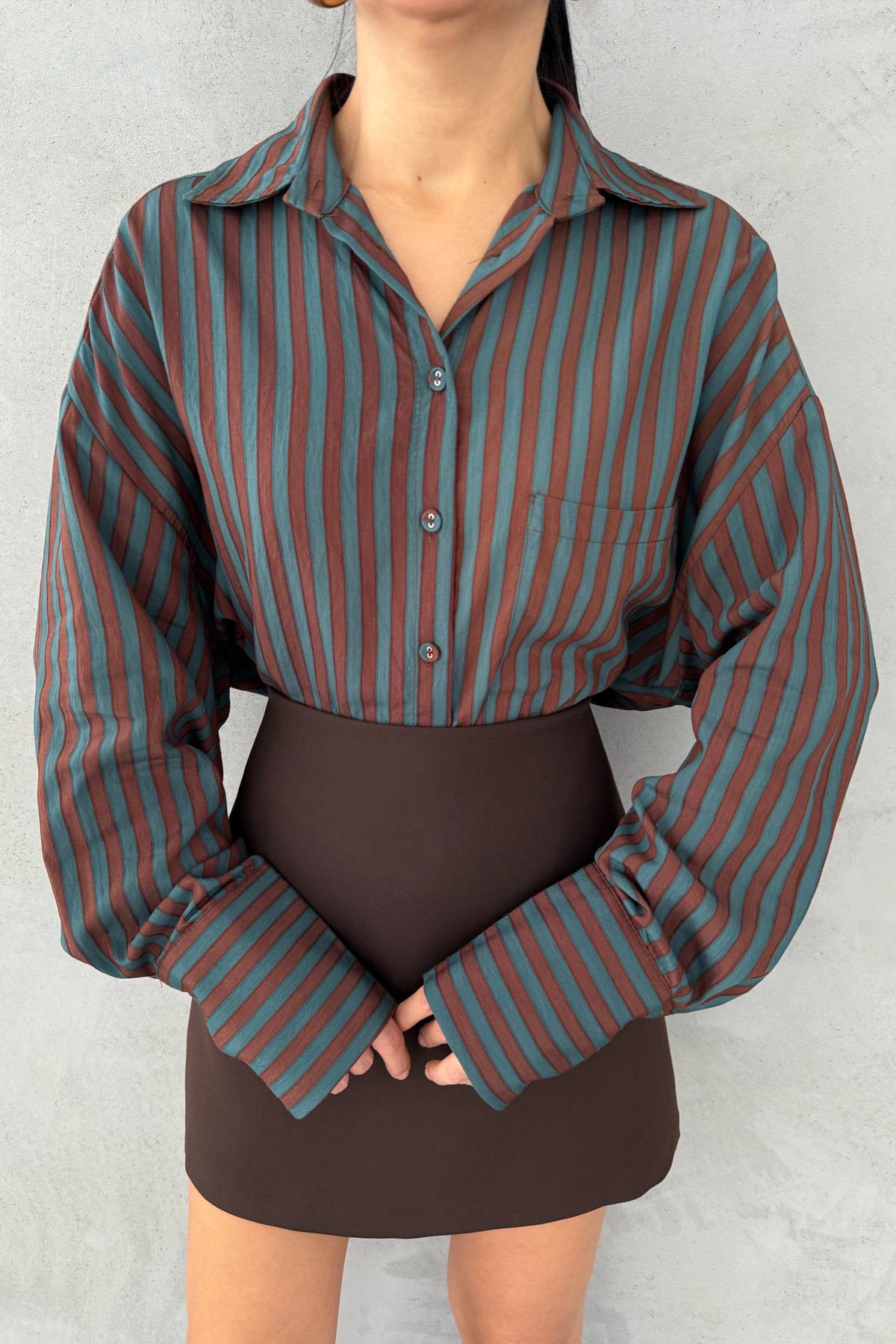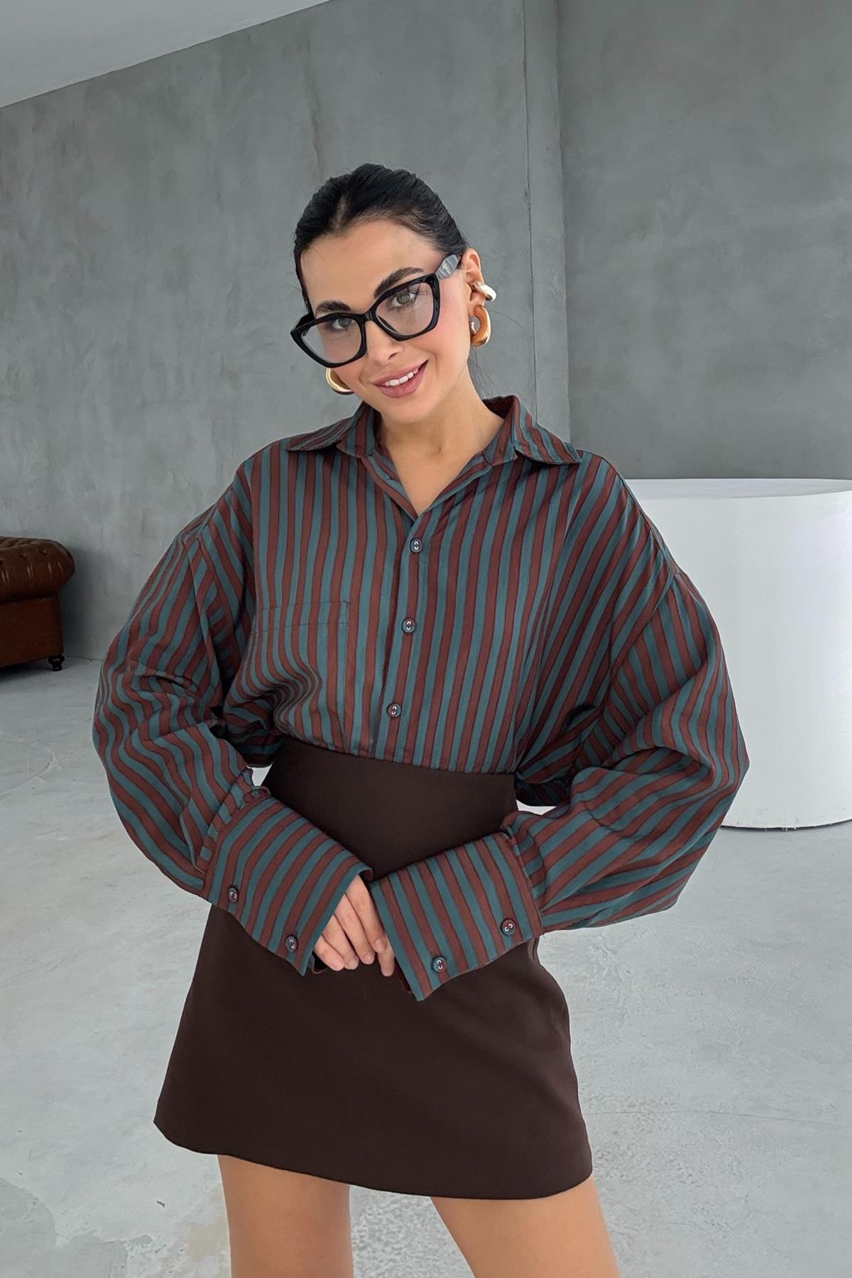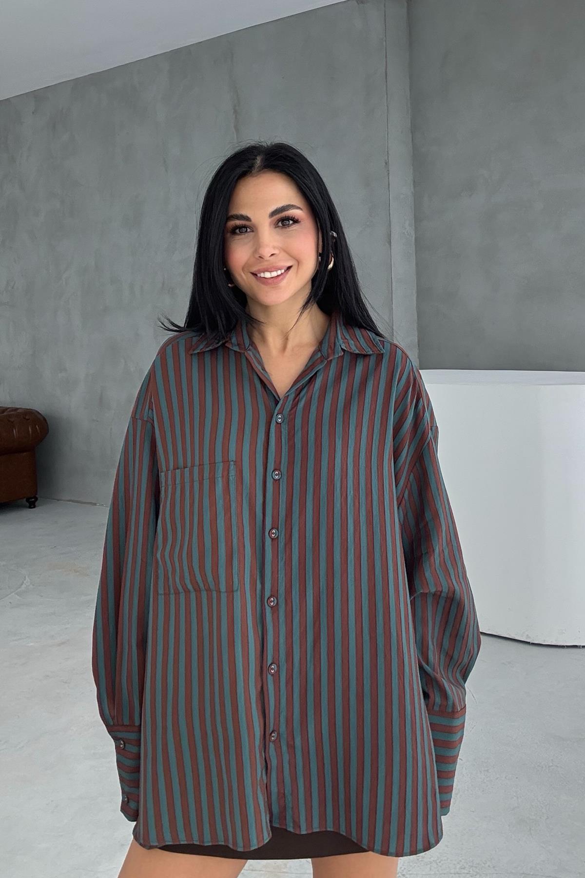 Ürün Detayları ; Yeşil Çizgili Premium Gömlek